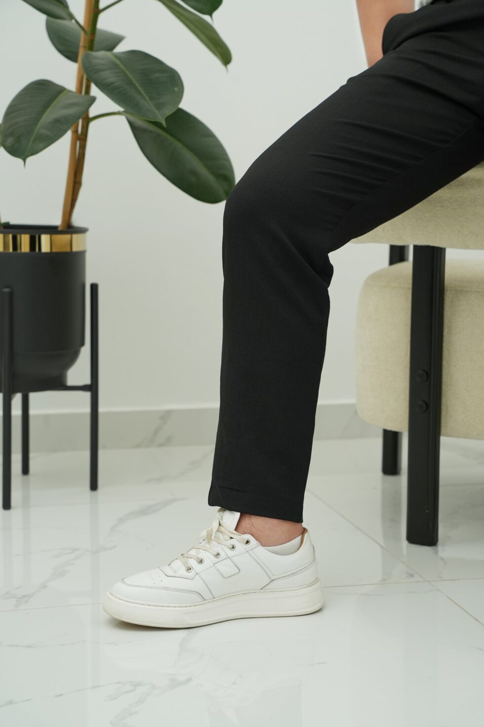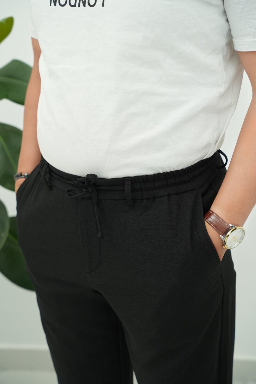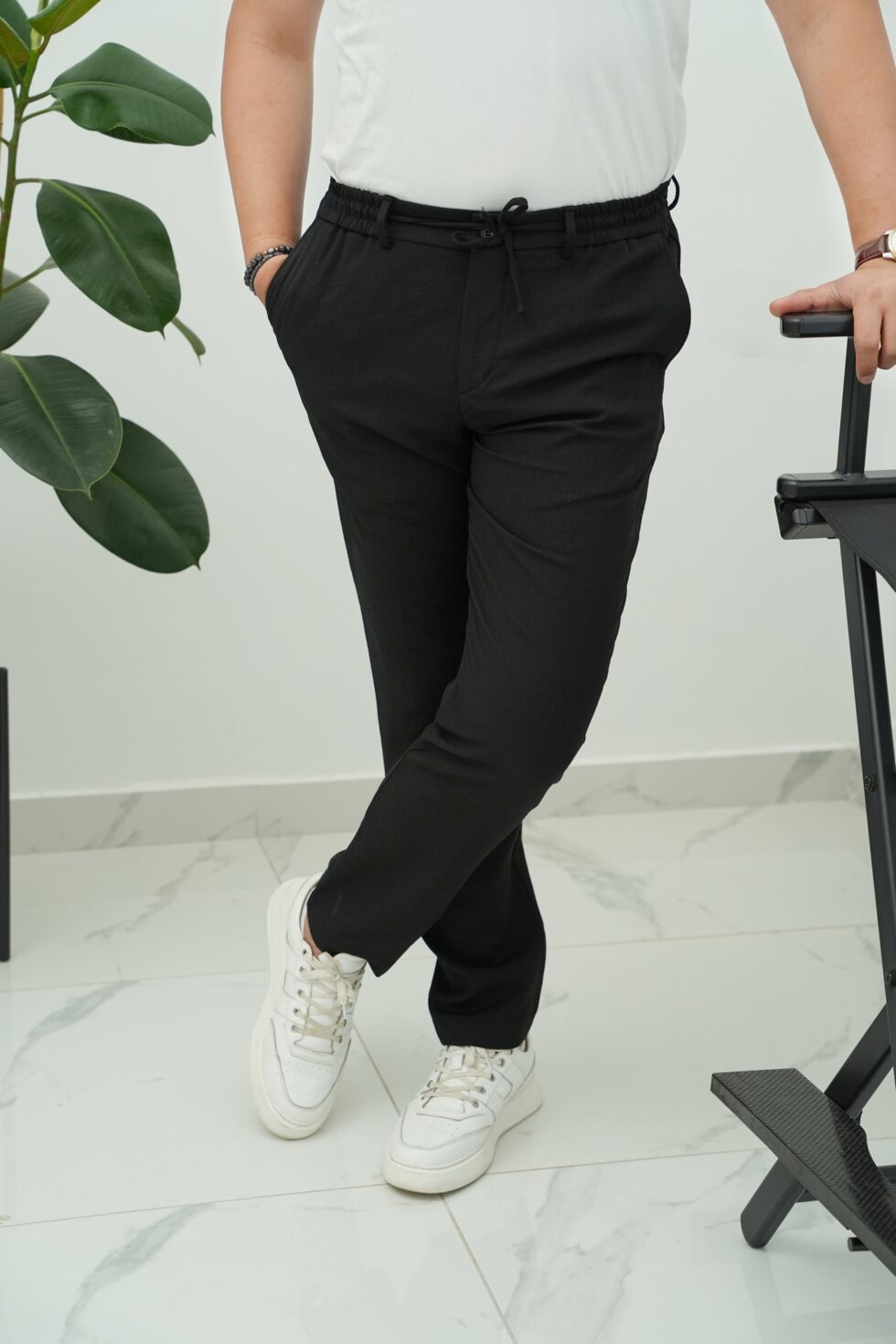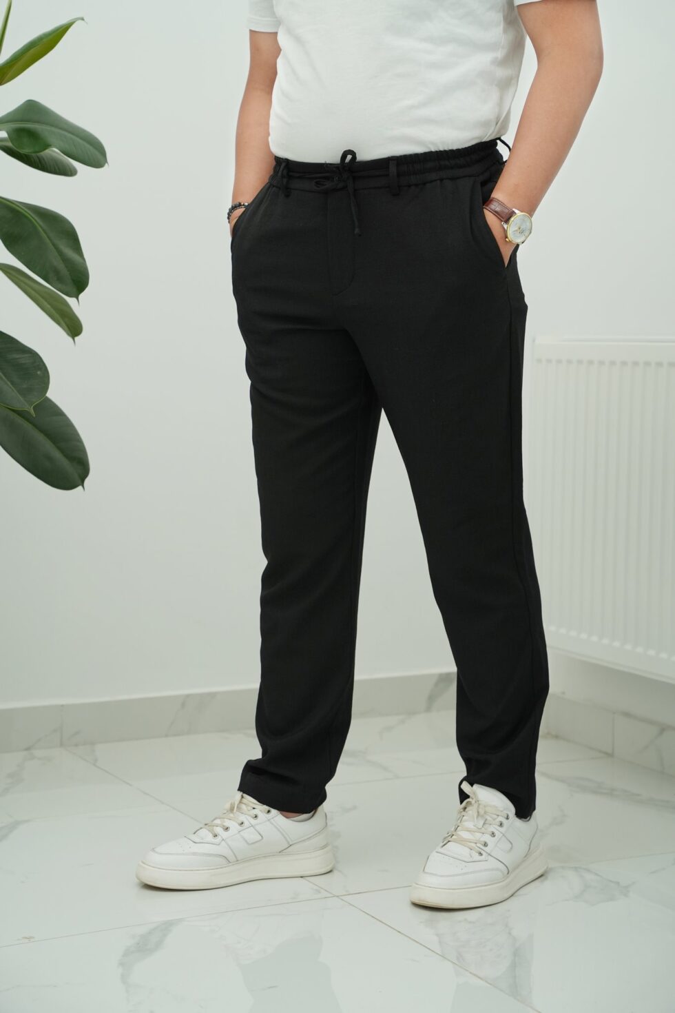 Ham Keten Desenli Jogger Pantolon Siyah