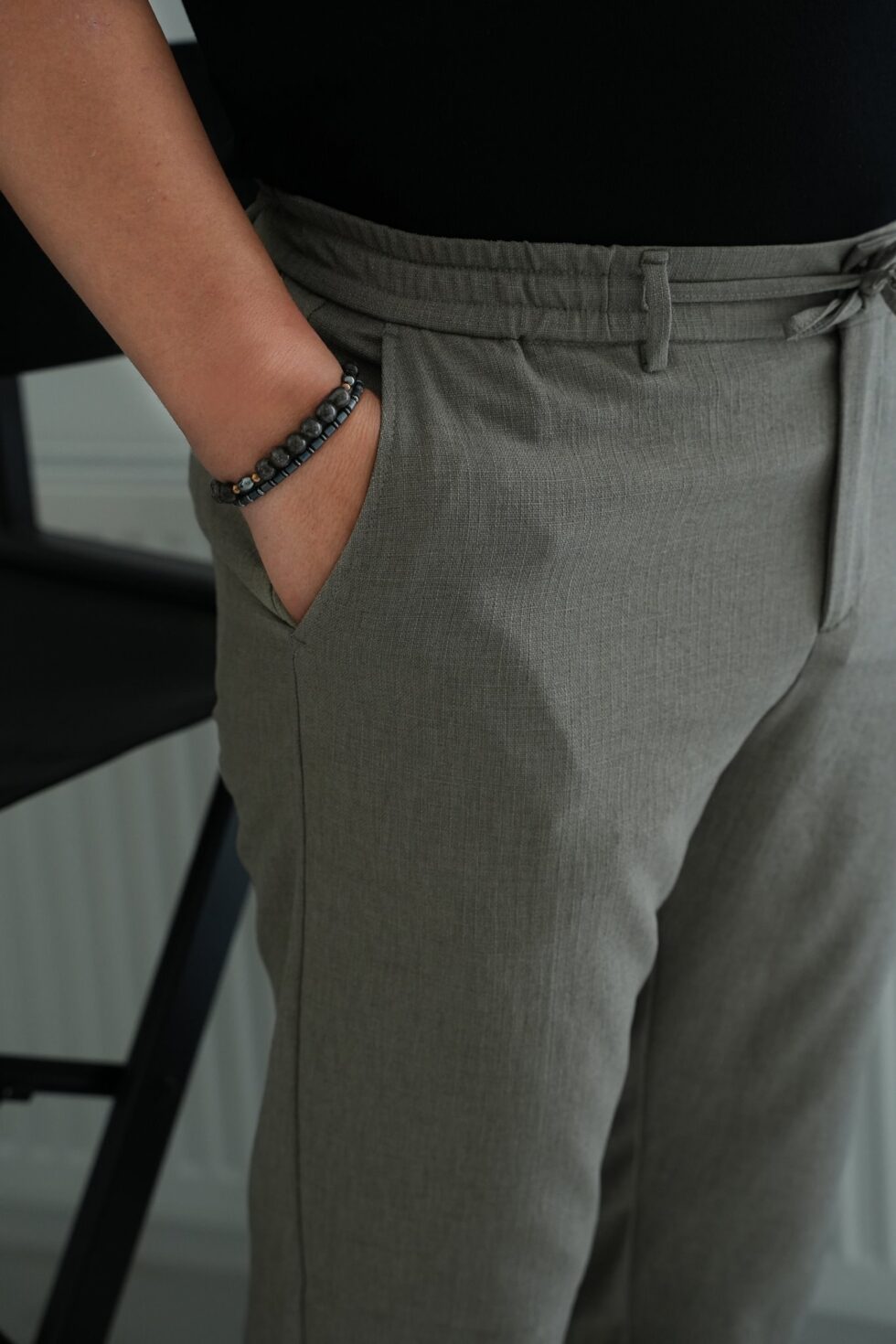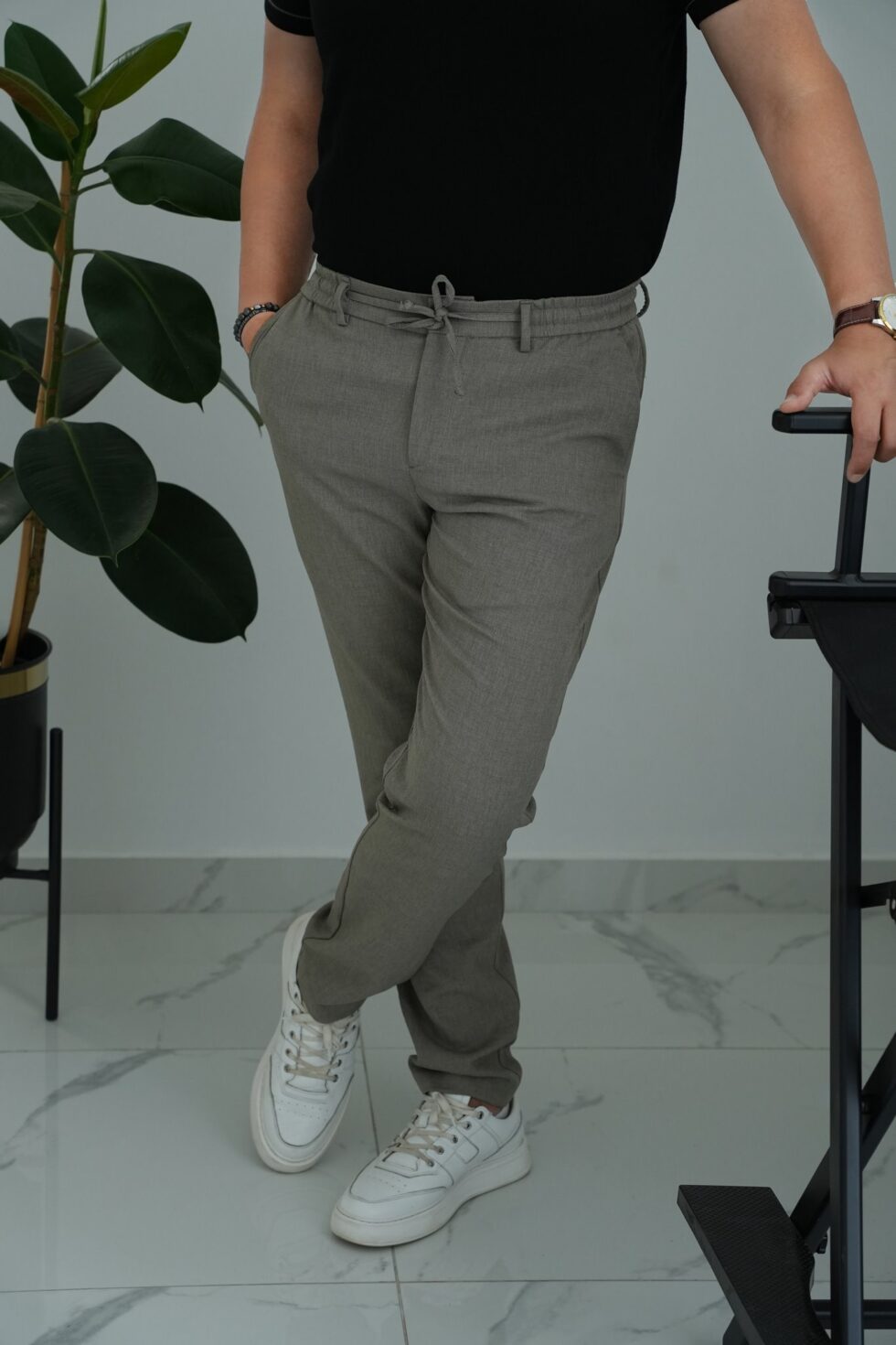 Ham Keten Desenli Jogger Pantolon Haki